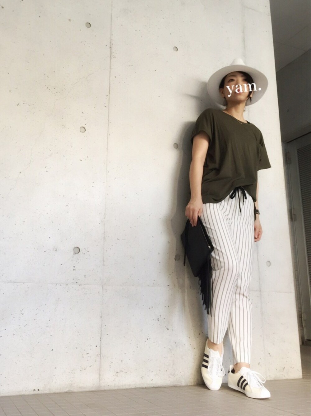 yam.のTシャツ/カットソー「FRONT SLIT DOLMAN TEE J」を使ったコーディネート