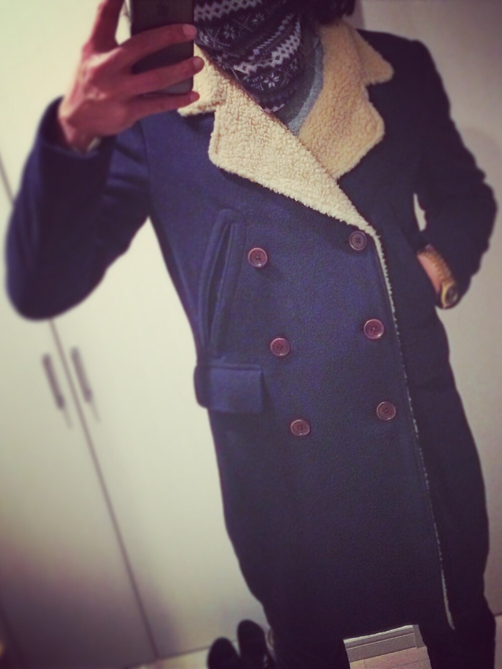 ブラック系のスニーカーを着用したメンズの冬コーディネートの1枚目の写真