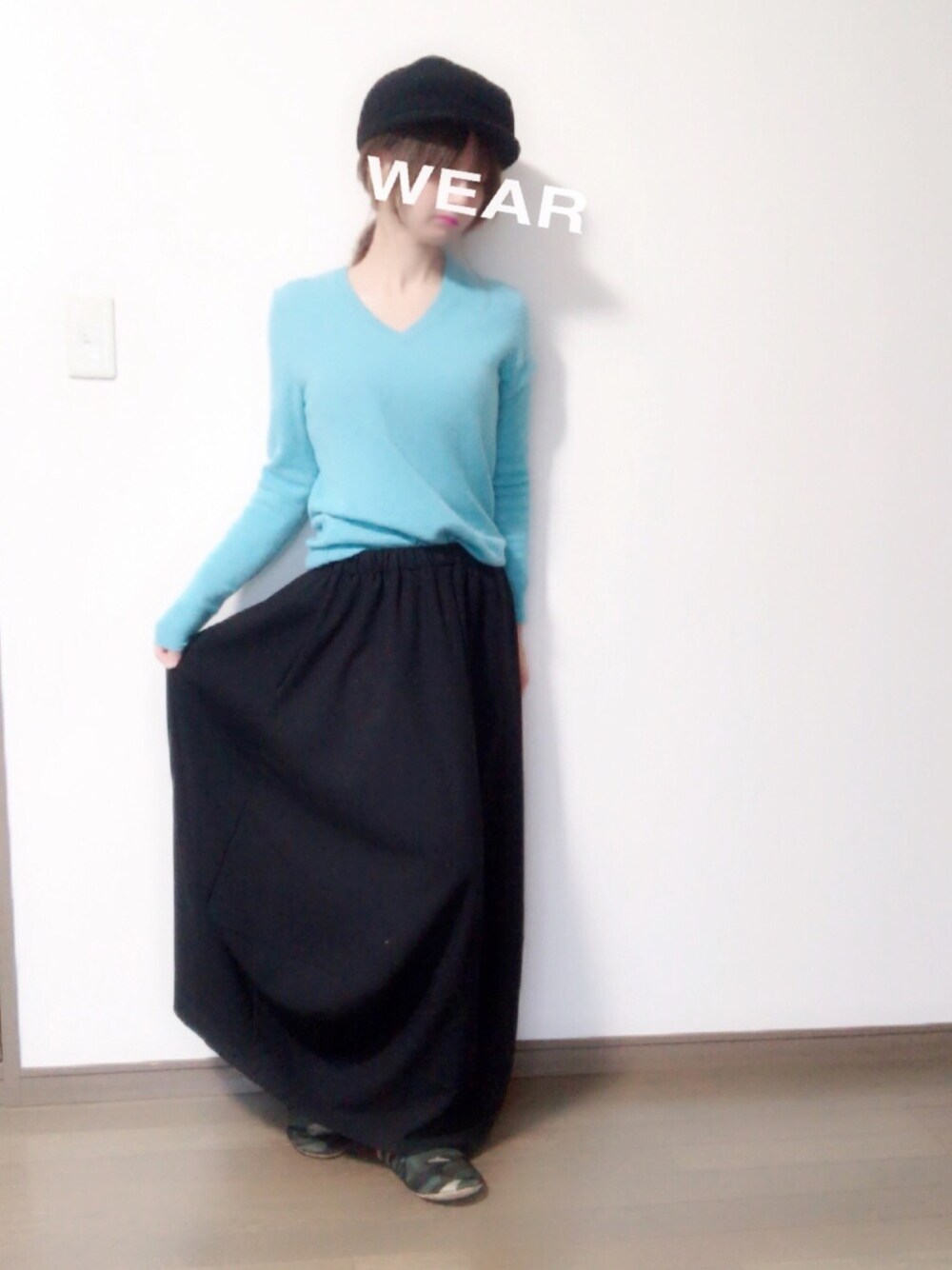 antiquaのスカート☆*: 形と丈感がよき。 トップスのUNIQLOカシミアニットは このカラーがとても好き。 こんな鮮やかな色あまり見ない♪