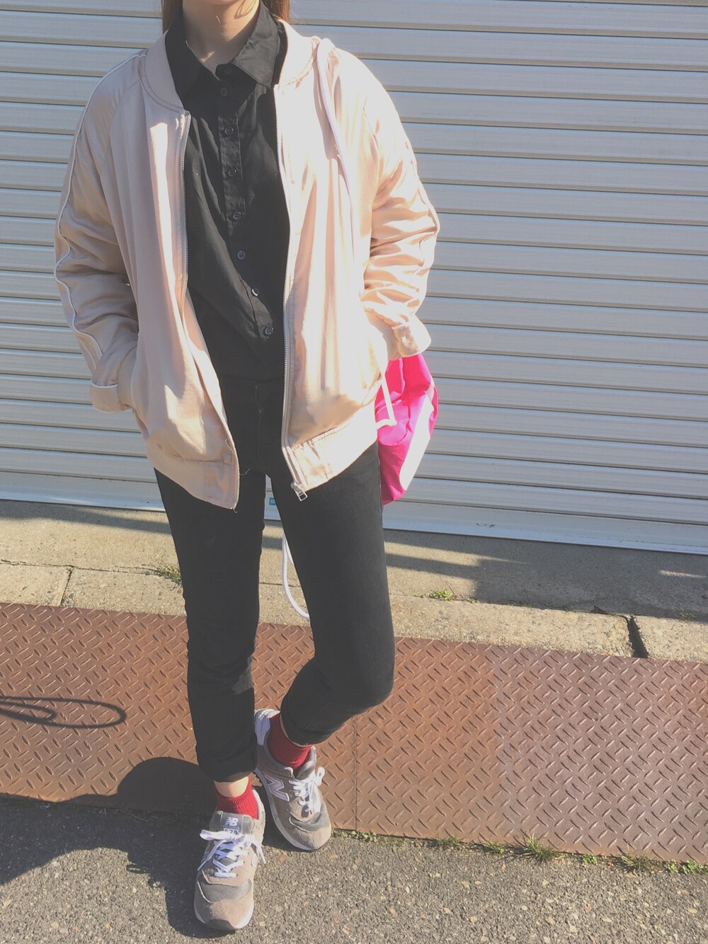 トップスもスキニーも黒だったのでので ピンクをちょこちょこ入れました 昨日と同じアイテムだけれど中が違うから また楽しいいいイイ