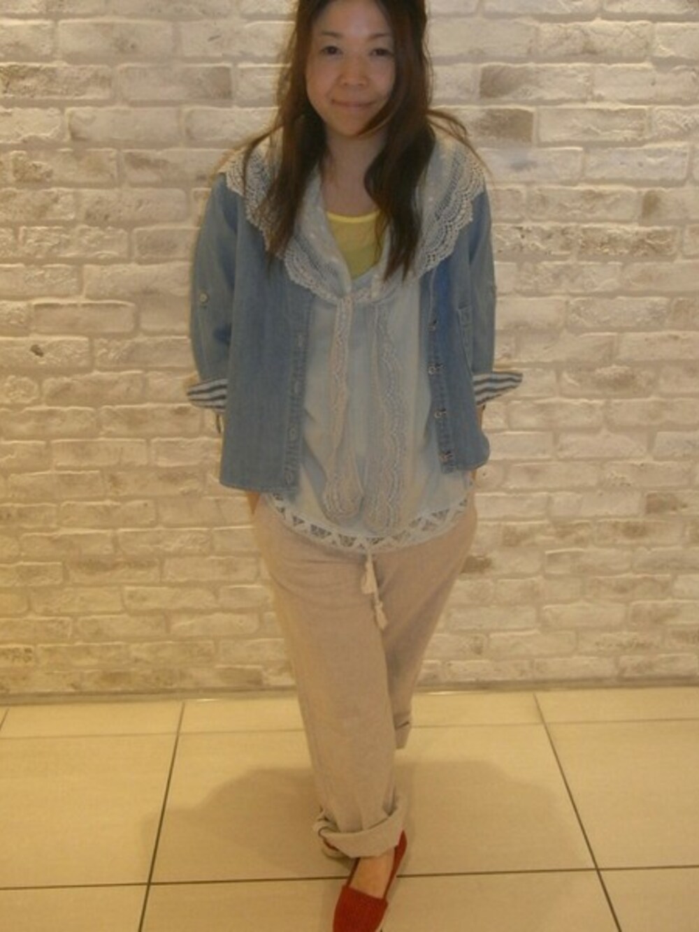 マリンシャツとイージーパンツも一緒に合わせて春のリゾートスタイル♪