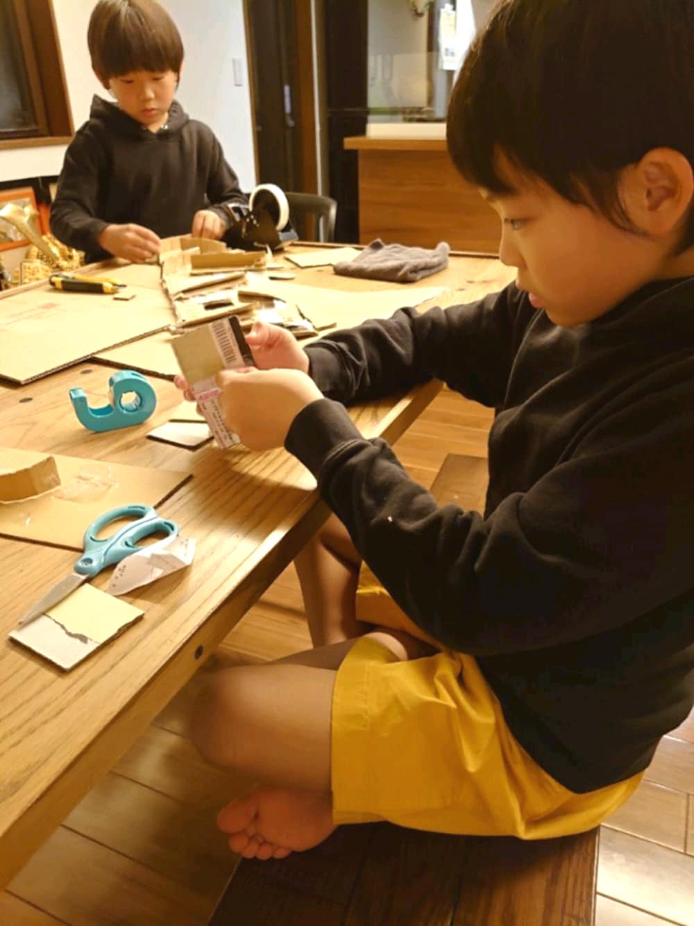 男子たちは とにかく作る作る。 憧れのグラミチ履けたのに ボルダリングできないし 作る作る ダルトンのテープカッター 大活躍