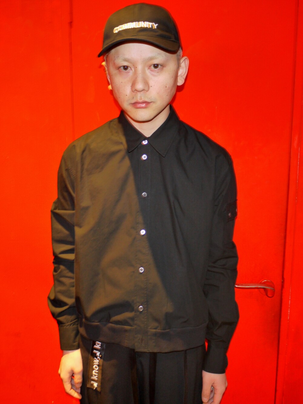 ブラック系のシャツ/ブラウスを着用したメンズの春コーディネートの1枚目の写真