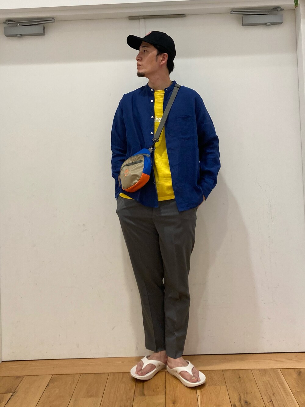いつも見て頂きありがとうございます。 今回はキレイめカジュアルで。 この夏にオススメのリネンバンドカラーシャツ。 ベーシックなサイズ感で、どなたでも着やすいオススメシャツです。 indigoのカラーは色落ちなどの経年変化が楽しんで頂けるのが魅力的です。 バンドカラーは大人っぽさが出るので良いですよね。 インナーには毎年定番のmelelanaのカットソーを。季節感のあるカラーで、1枚で着た時も可愛いのでオススメです。 パンツはテーパードイージースラックス。 テーパードがしっかり効いたキレイめシルエット。シンプルなデザインですので、どんなトップスとも相性が良いですよ◎ 足元は大人気のoofosを。 クッション性が高く、長時間履いていても足が疲れにくいので、かなりオススメですよ。 良ければご参考までに、、、 #stylesamples ZOZOTOWNにて店舗取り置きのサービスが始まりました。実際に商品を見てから決めたい、試着してみたいなどございましたら、是非ご利用下さい。 京都桂川店でも承ってますので、気軽にどうぞ◎