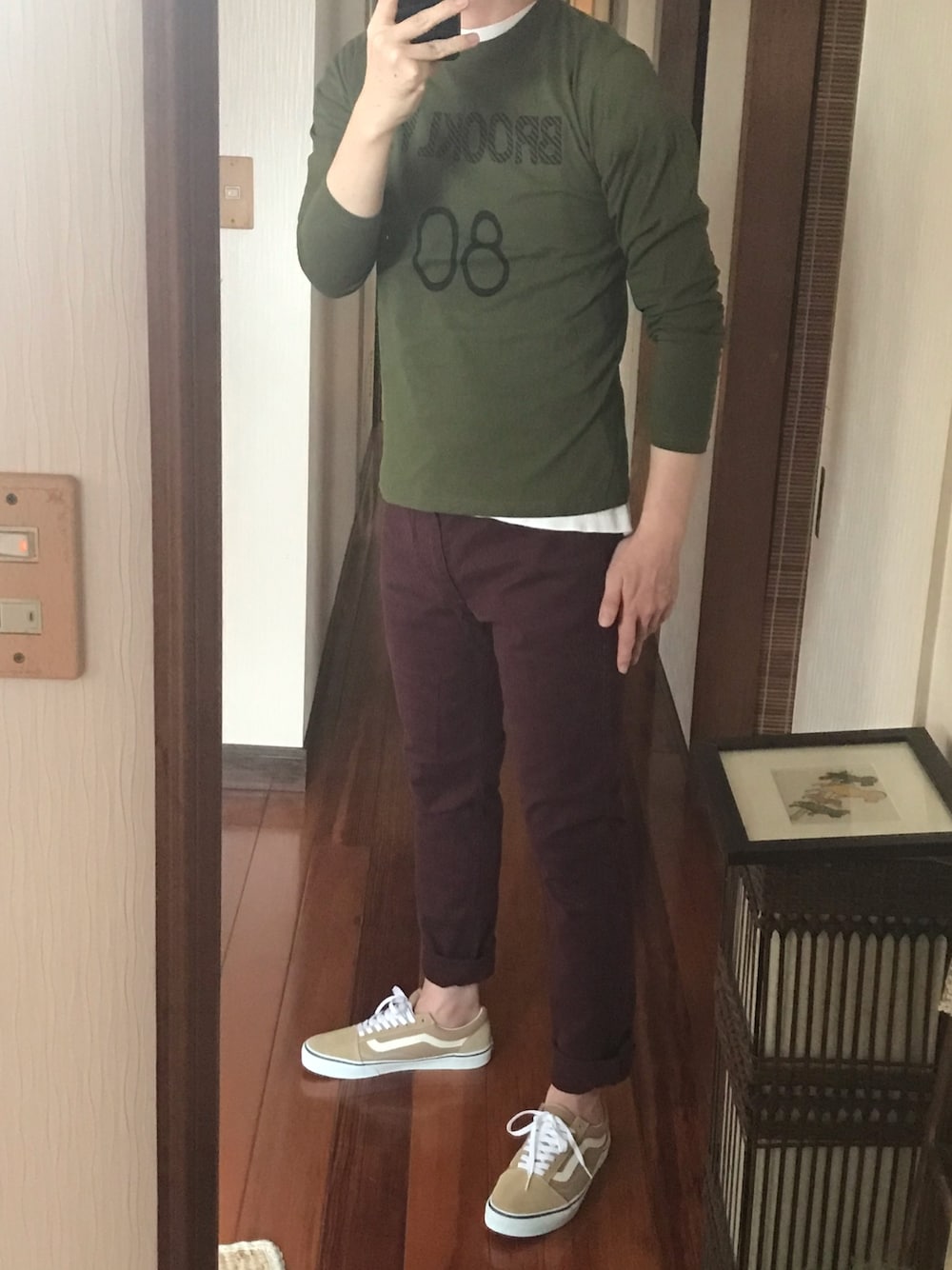 山参のTシャツ/カットソー「プリントロングスリーブTシャツ」を使ったコーディネート