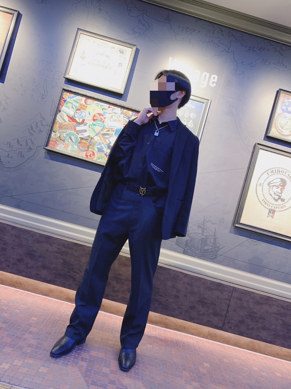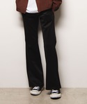 全身黒のブラックコーデです! フレアパンツとヒールブーツを使用して、ハイウエストな位置でパンツを止めることで、足長効果も期待できるプチプラこーでです! 全身黒なかんじと、小物で中和された感じで雰囲気がでるのでおすすめです!