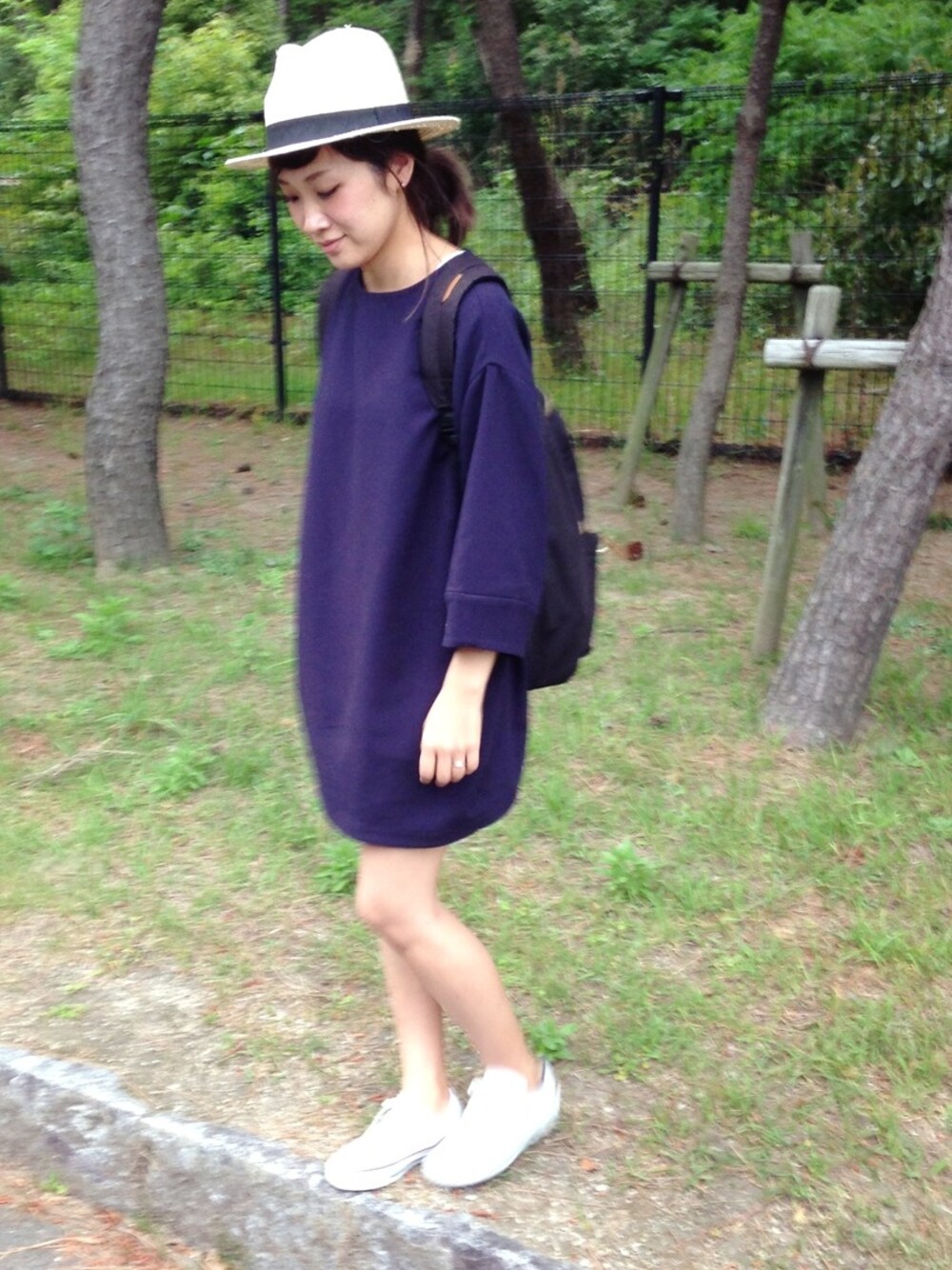 yanのワンピース「シンプルオーバーワンピース」を使ったコーディネート