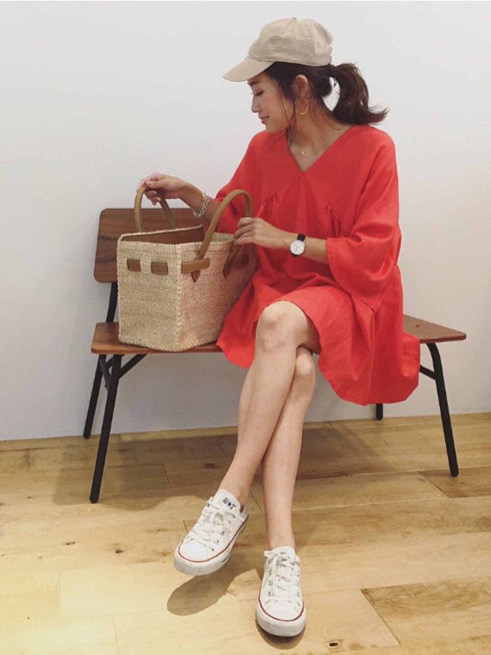 yanのトートバッグ「カゴバッグM」を使ったコーディネート