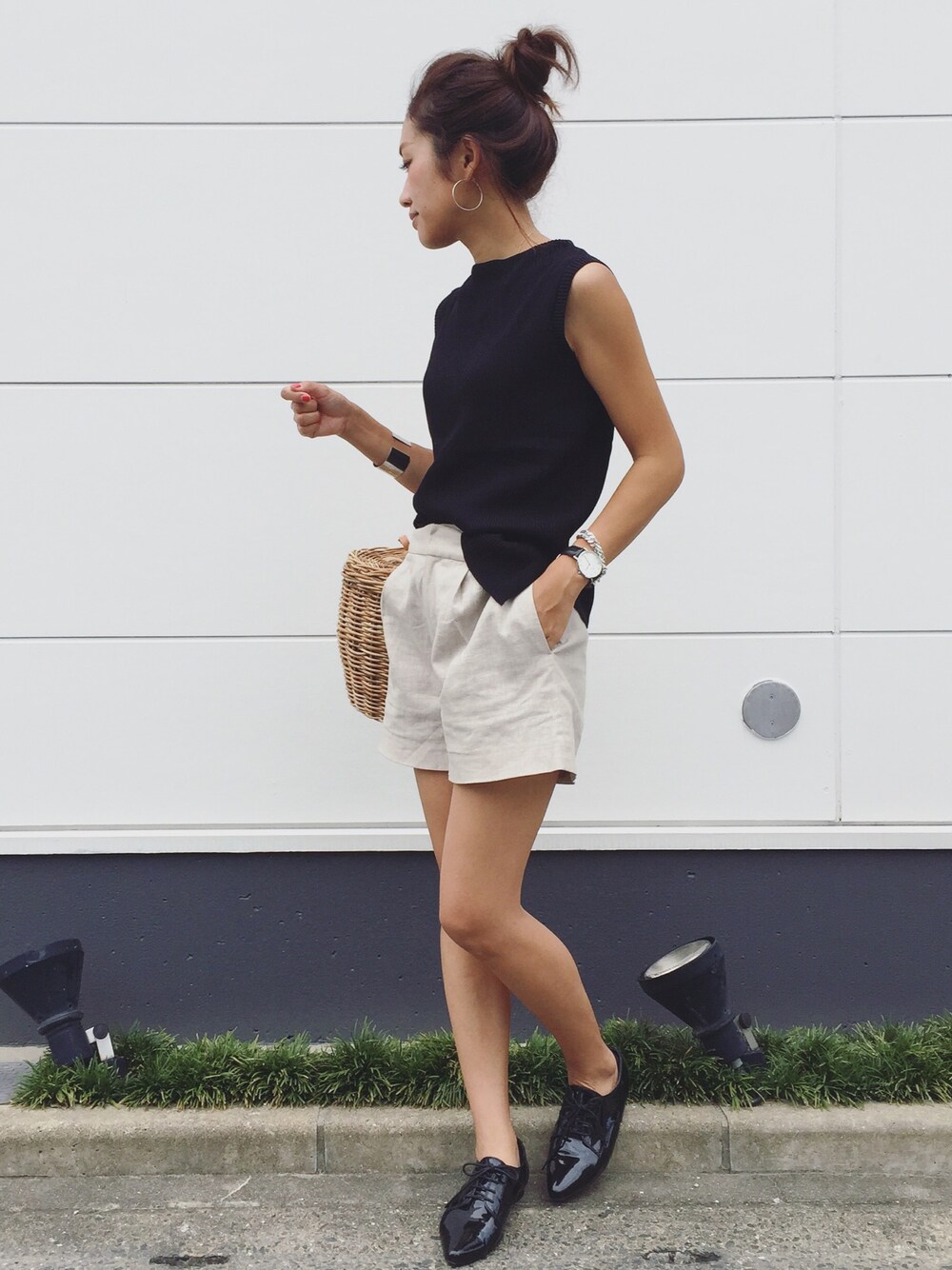 yanのニット/セーター「ボートネックノースリーブリブニットプルオーバー」を使ったコーディネート