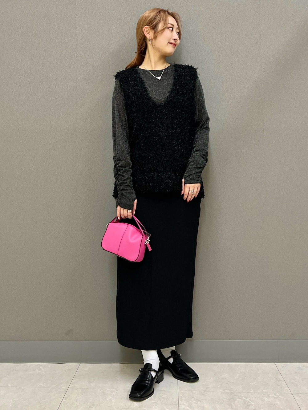 ヤノアミ(SENSE OF PLACE ジョイナス横浜)のTシャツ/カットソー「ラメリブロングTシャツ」を使ったコーディネート