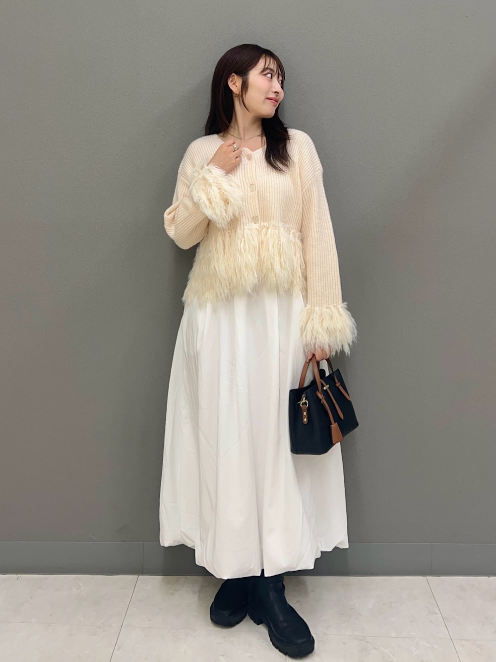 ヤノアミ(SENSE OF PLACE ジョイナス横浜)のニット/セーター「フェザーフリンジセーター」を使ったコーディネート