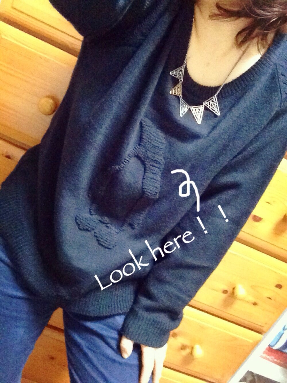 ネイビー×ネイビーcode(`・ω´・+)v 無地かと思いきや! ペンギンが浮き出てるニットなんです!! Hanjiroにて 一目惚れで買いました(///ω///)