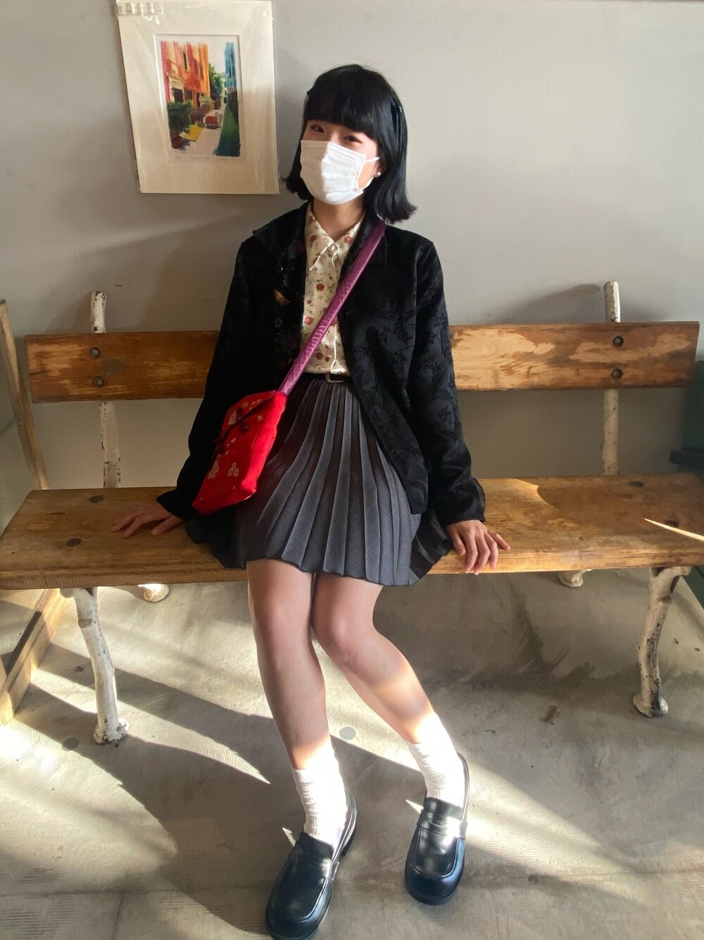 古着屋さんで一目惚れした中華バックが主役🐲 ボブの外ハネミニクリップがお気に入り