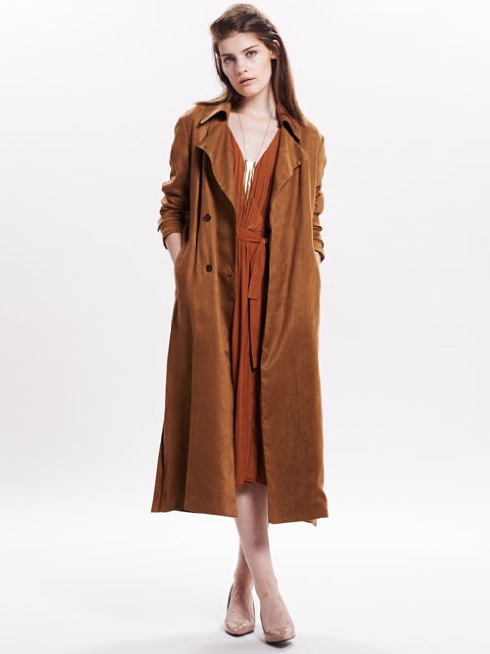 ADAM ET ROPE'のジャケット/アウター「フェイクスエードサイドスリットコート」を使ったコーディネート