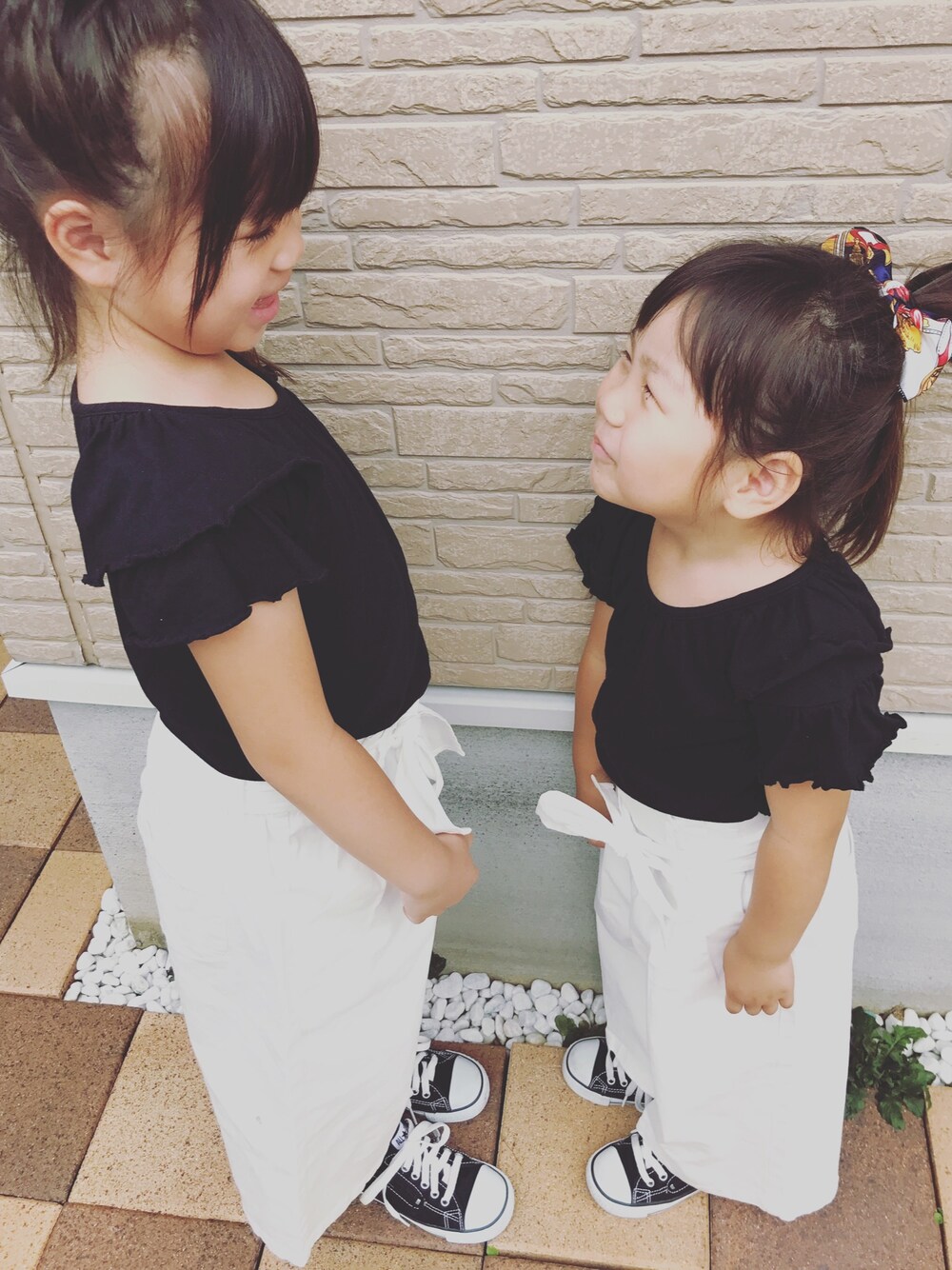 肉々しい姉妹達...^^; グローバルワークのワイドパンツは半額で買ったもの☆ プチプラコーデ♡