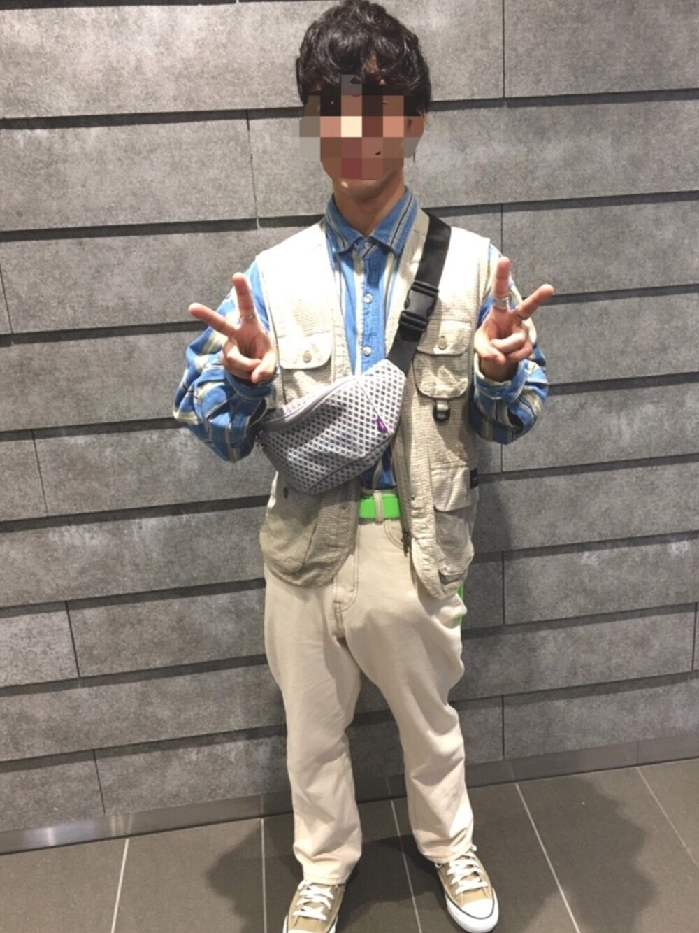 こんにちは! 古着屋さんで一目惚れしたストライプシャツ! 水色と白色の組み合わせが最高です😆 シャツ1枚でインしてもよかったけど今回はフィッシングベストと合わせました! Akiだけに秋服沢山着て楽しみたいです!笑 ラブアンドピース✌️