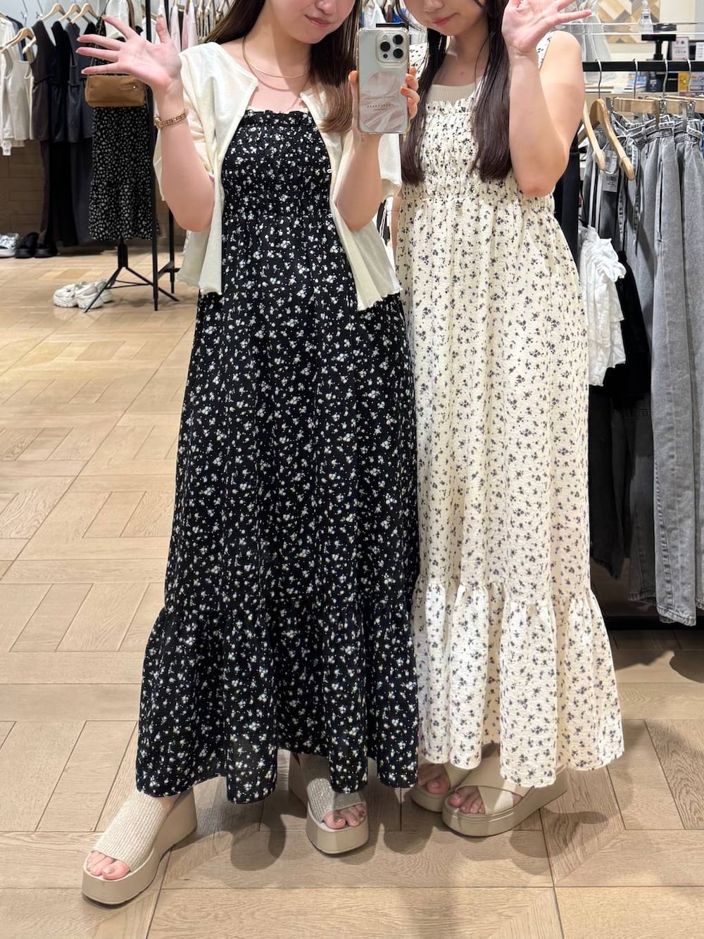 スタッフちゃんとワンピお揃いだった日🌷 ノースリーブでそのまま着ても、 腕出すのが苦手な方は羽織り合わせでも 可愛く着れます!♡