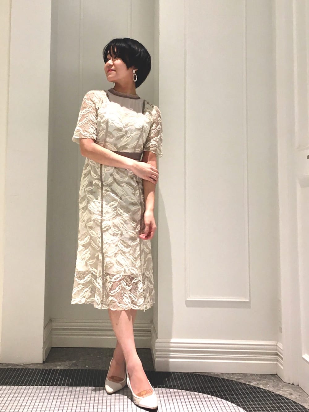 やのちゃんのワンピース「バイカラー レース ドレス」を使ったコーディネート