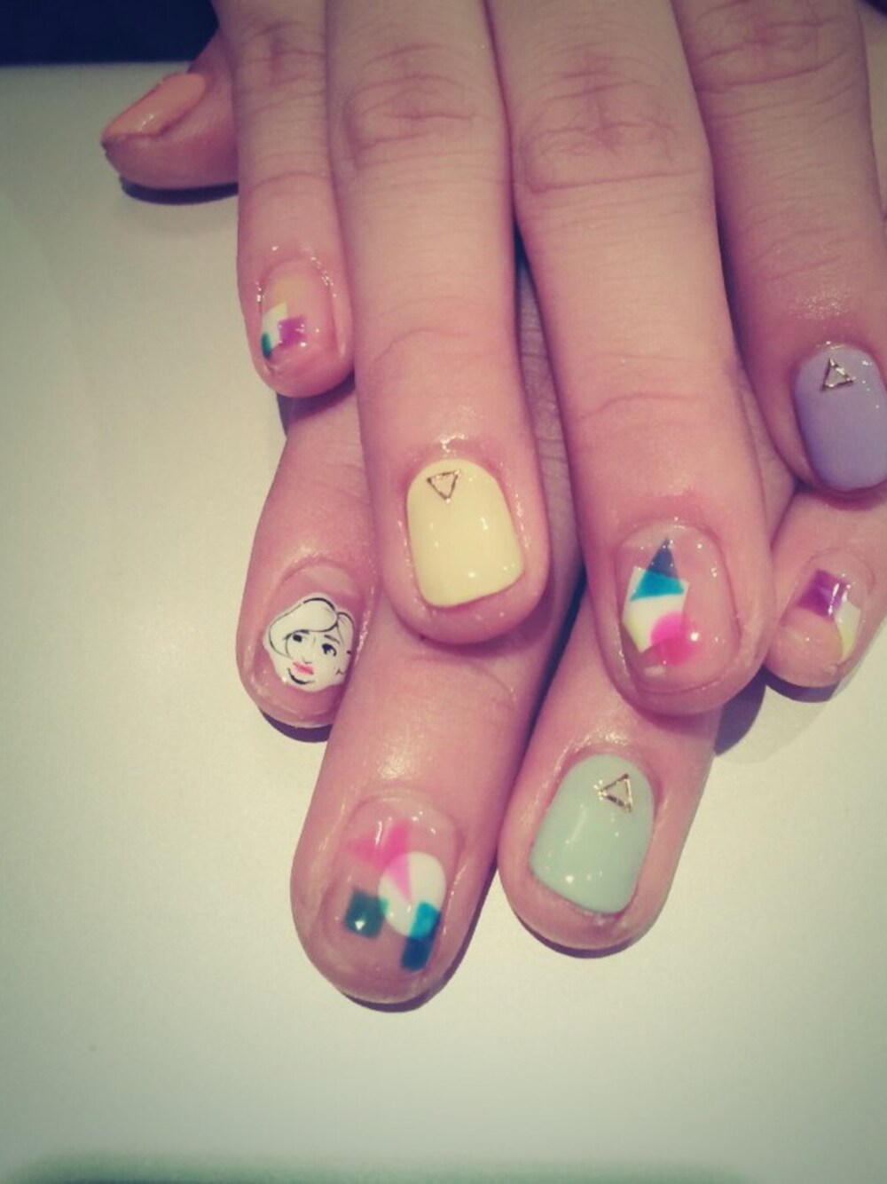 new nail 遊び心のあるねいる*\(^o^)/* なつだから珍しく明るめカラーで クリアだし、、そまりそうだなー 大好きなアバリスさんで◎ 手先だいじにあつかわなければ(=^x^=)