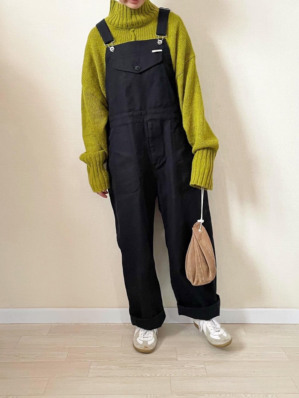 グリーンニットにオーバーオール!!