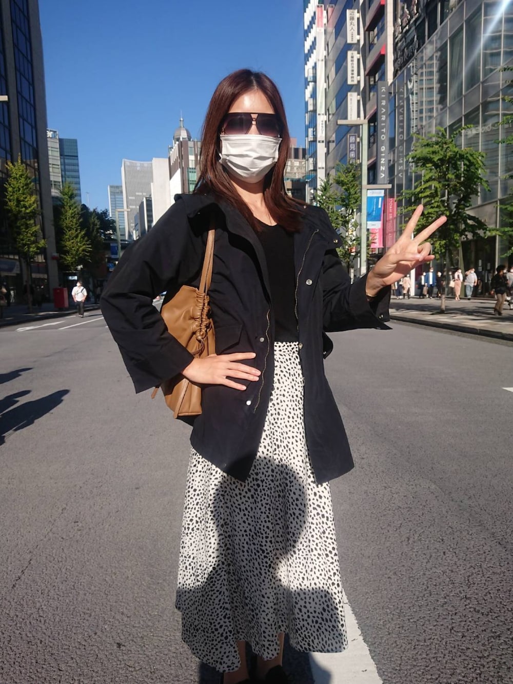 トーン抑えめの大人コーデ。 キャメルカラーのバッグでアクセントを添えました。