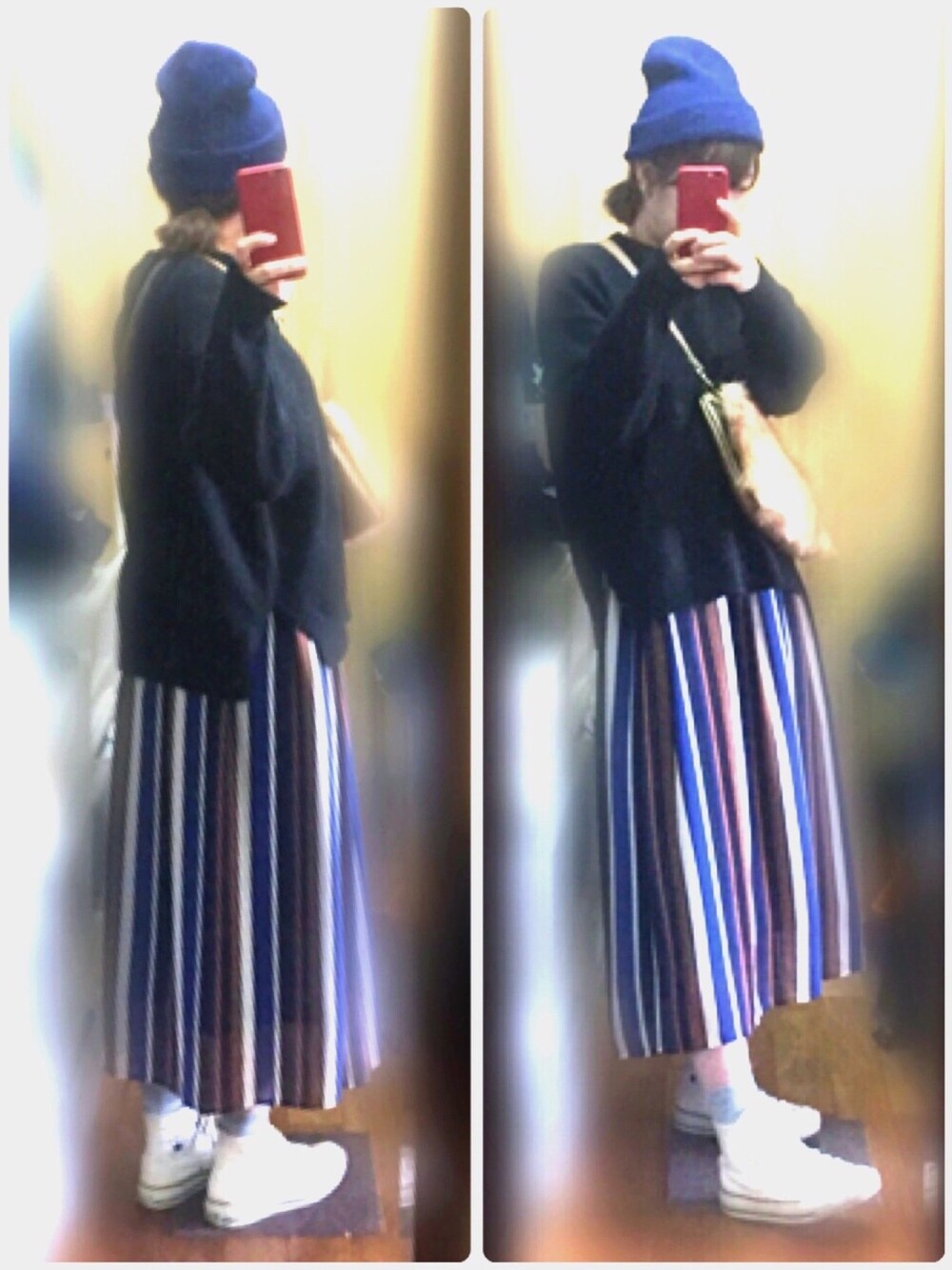 ノースリーブワンピの上からブラックニットを被りましたー(∗ˊᴗ`∗) これで冬仕様✧*。
