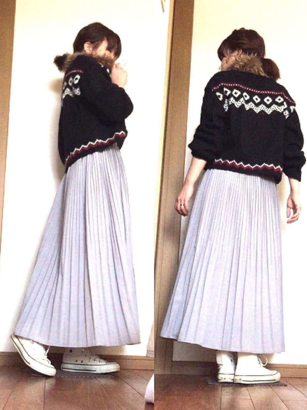 プリーツスカート好き☺️🌸✨ ニットはもう何年も前に古着屋さんで買ったもの🙌🏻🍭