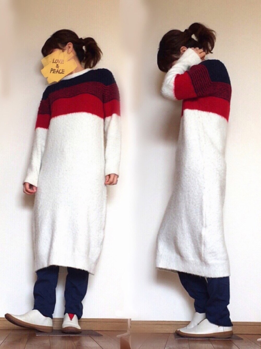 ニットワンピはお布団着てるみたいであったかいですね〜😙❤︎ 甘くなり過ぎないようにパンツ穿きました👖✧*。