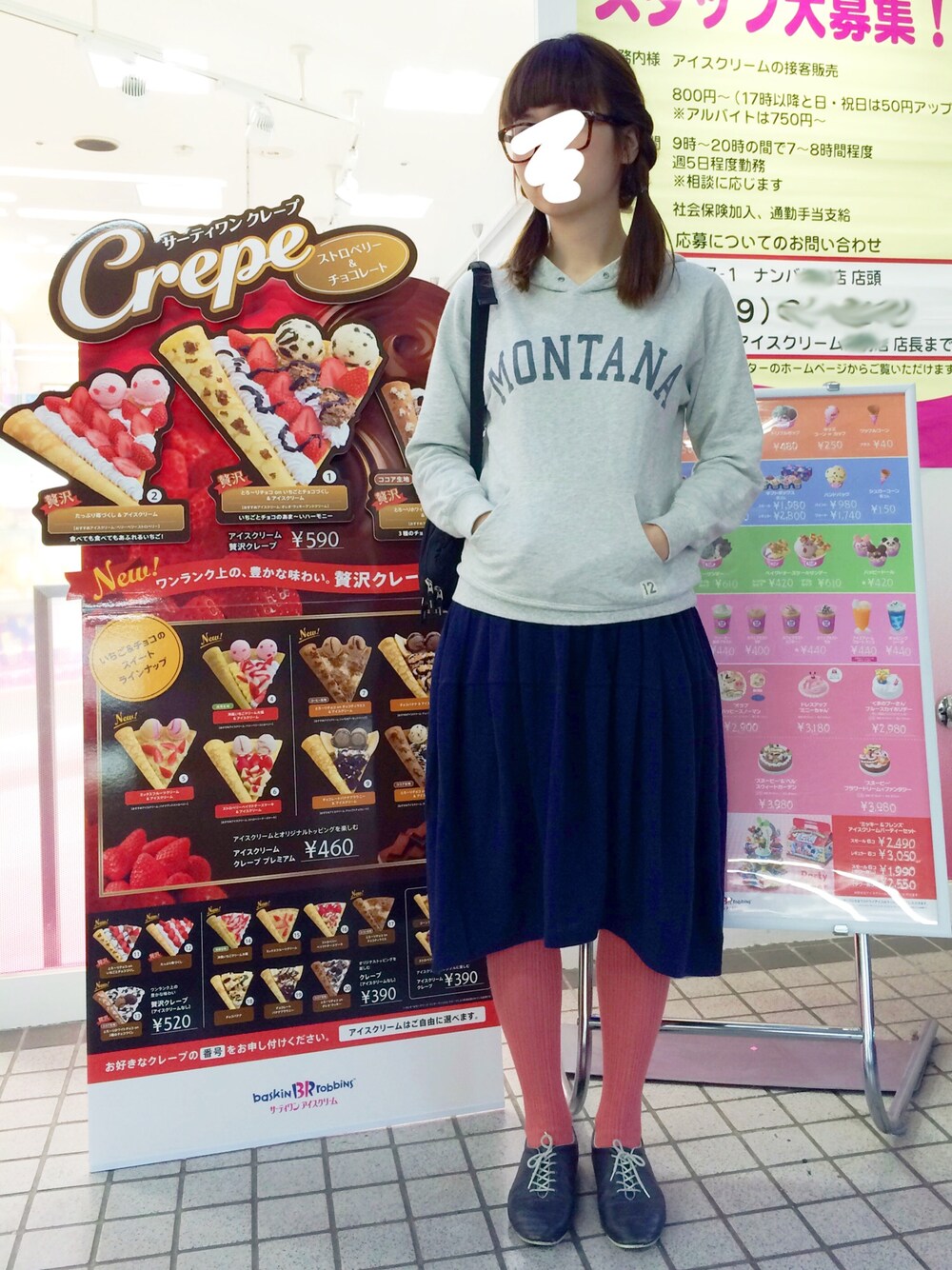 サーティワンでアイスクレープ♡ 夜は幼馴染みに誘われてプールでフィットネスデビュー! このパーカー、サイズ感小さくて好きだ〜(^o^)