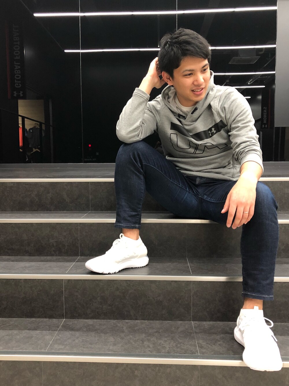 シンプル グレーパーカー トレーニング時にも使える素材が◎