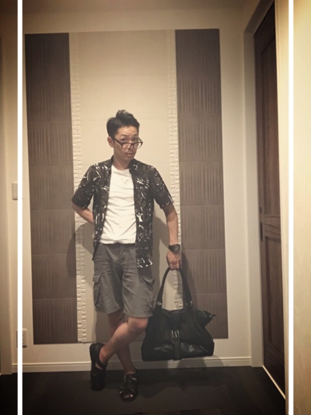 ヤッピー です! 今日のコーディネート😃✨ ・ ラスト平成コーデ😂 ・ カーキのアロハシャツにカーゴパンツでトーンをまとめて、バッグとベルトとサンダルを編み込みな感じで小物を統一しました👍 ・ ・ ・ ●shirt👕→#アロハシャツ ●T shirt🎽→#ヘインズ ●shorts👖→#カーゴショーツ ●sandal👡→#グルカサンダル