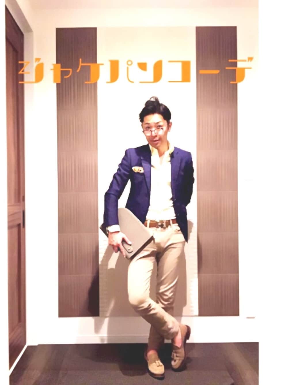 ご無沙汰です! ヤッピーです! インスタばっかりでした😵 今日はジャパンコーデです✨ やはりブルーのジャケットにベージュのパンツは合わせやすいですね😊 ちょっとシャツだけイエローのイタリアンカラーで遊んじゃいました✨