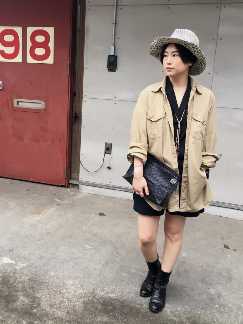 オフの日も出勤時とあまり変わりません。笑 肌寒いので、ヴィンテージのシャツをプラスしました。
