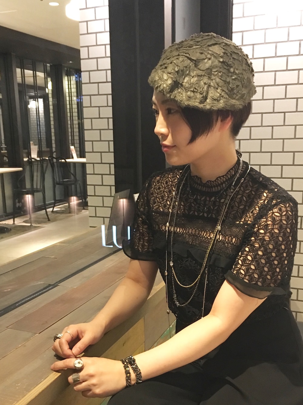 IOSSELLIANIのネックレスは重ねて、重ねて、また重ねて…がブームです。 ドレッシーなスタイルにもロックを。