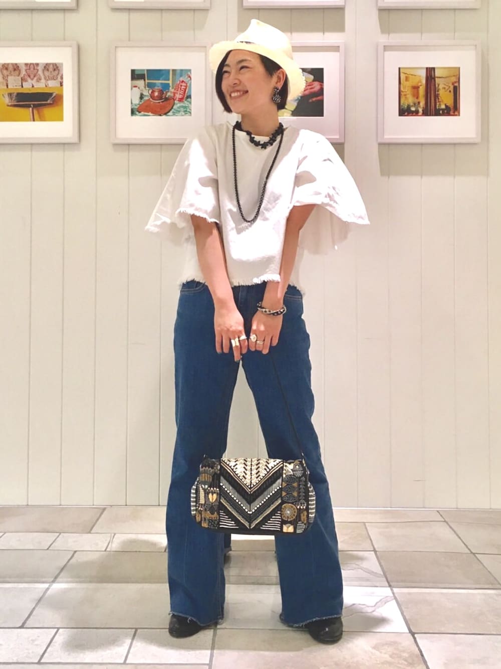 店頭では日々爽やか春夏コーディネートを楽しんでいます。デニム素材の上下でカジュアル。バッグはラグジュアリー。 きちんと感を残すことがマイルールです。
