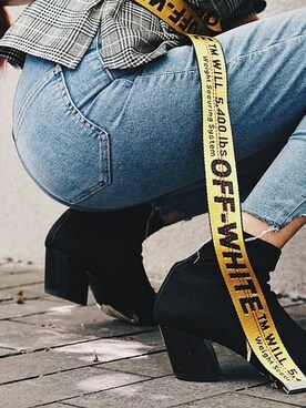 「off white(オフホワイト)のアイテム(ベルト、イエロー系)」を使った、Yarina Yaoさん(レディース)の秋コーディネート