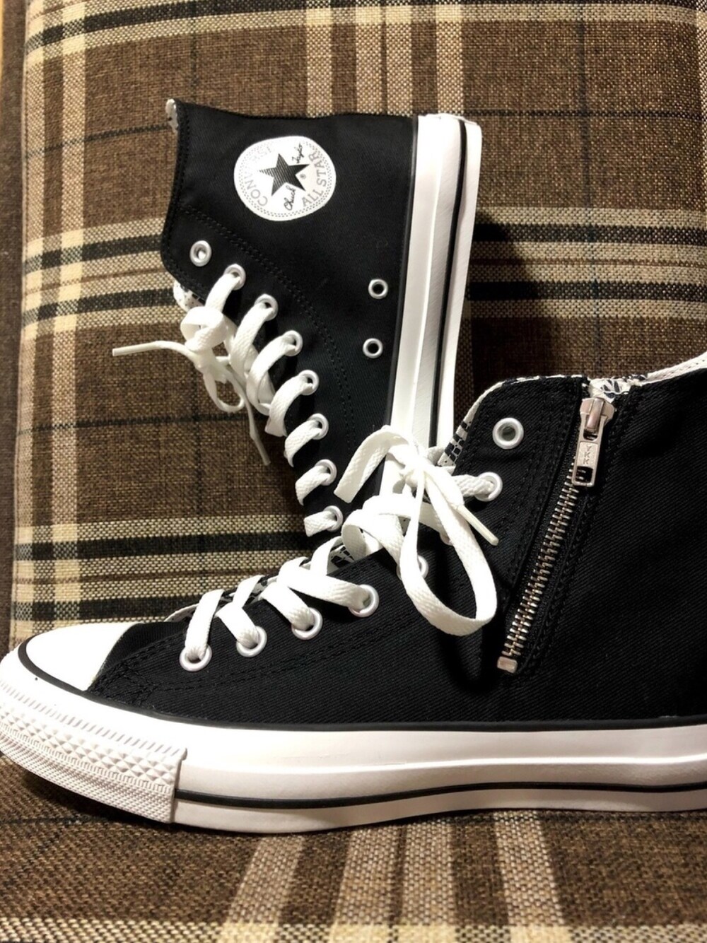みていただきありがとうございます😊 コンバースのハイカットスニーカー👟 ジップも付いてて、裏地もオールスターのロゴになっていてとてもオシャレです✨