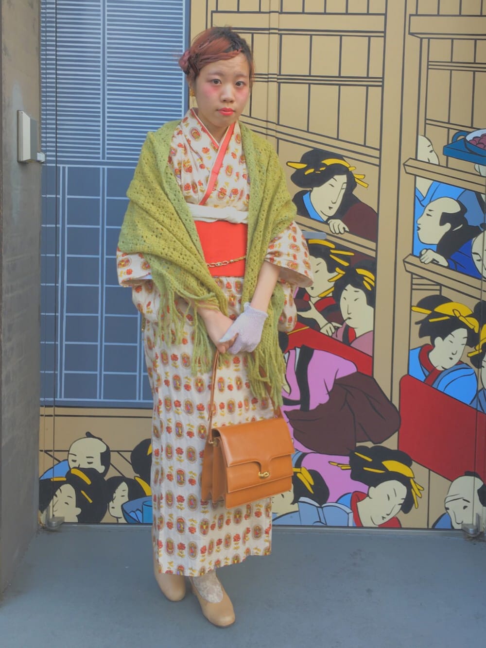 おとといは校外学習で浅草に行きました♢ 浅草だったので着物を着て行きたいと思い、じぶんで着付けて学校に行きましたʚϊɞ 初めて学校に着物を着ていったけれど、すごく好評でみんな褒めてくれてとても嬉しかった~❕ 髪の毛は友達がやってくれました天才✩⡱ このテキスタイルが可愛すぎる着物がすごくお気に入りで、 前もここに載っけたことがあるけど、 その時はボッパーを合わせたり、ファー小物を合わせたり、結構じぶん風にハズして着こなしたので、 今回はがっつり着付けて大正ロマン的に着こなそうと思って、着てみました❄︎ GUCCIのバッグはお母さんのお下がり✞.゜ あんまり量はいらないけれど女性ぽくなれた気がします⋆⌒。 帯や襟、ストールなどで色を使ってしまっているけど、着物の柄の色と合わせてるので、まとまりを持たせています☻ だけど足もとにはあまり主張する色をつかわず、控えめにベージュのヒールを合わせてみました☽ わたしの中で、大正ロマンって西洋の文化が入ってきている時で、和×洋が成り立っているイメージだったので、 皮のハンドバッグを合わせたり、ヒールを合わせたり、、これはハズすという意味ではなく、あくまでも大正ロマンに寄せたつもりなのです♧。 片っぽしかつけていませんがレースのグローブをつけてみたり、、ところどころで洋を取り入れつつ、かっちりとした着付けにしてみました(○^.^○)*ೃ やっぱり着物ってとても好きで、楽しいなぁって思うのでもっともっと着る機会を増やしたいなぁ~⚘ྉ おかあさんも着物が趣味だったみたいで、家にたくんあるので色んな着物に挑戦したいと思いますっ^.^♢♦︎