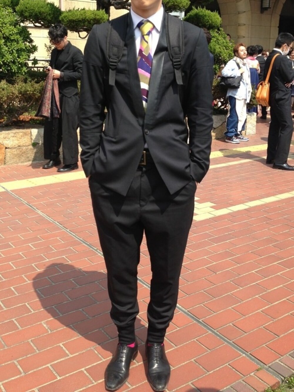 ピンク系のソックス/靴下を着用したメンズの春コーディネートの1枚目の写真
