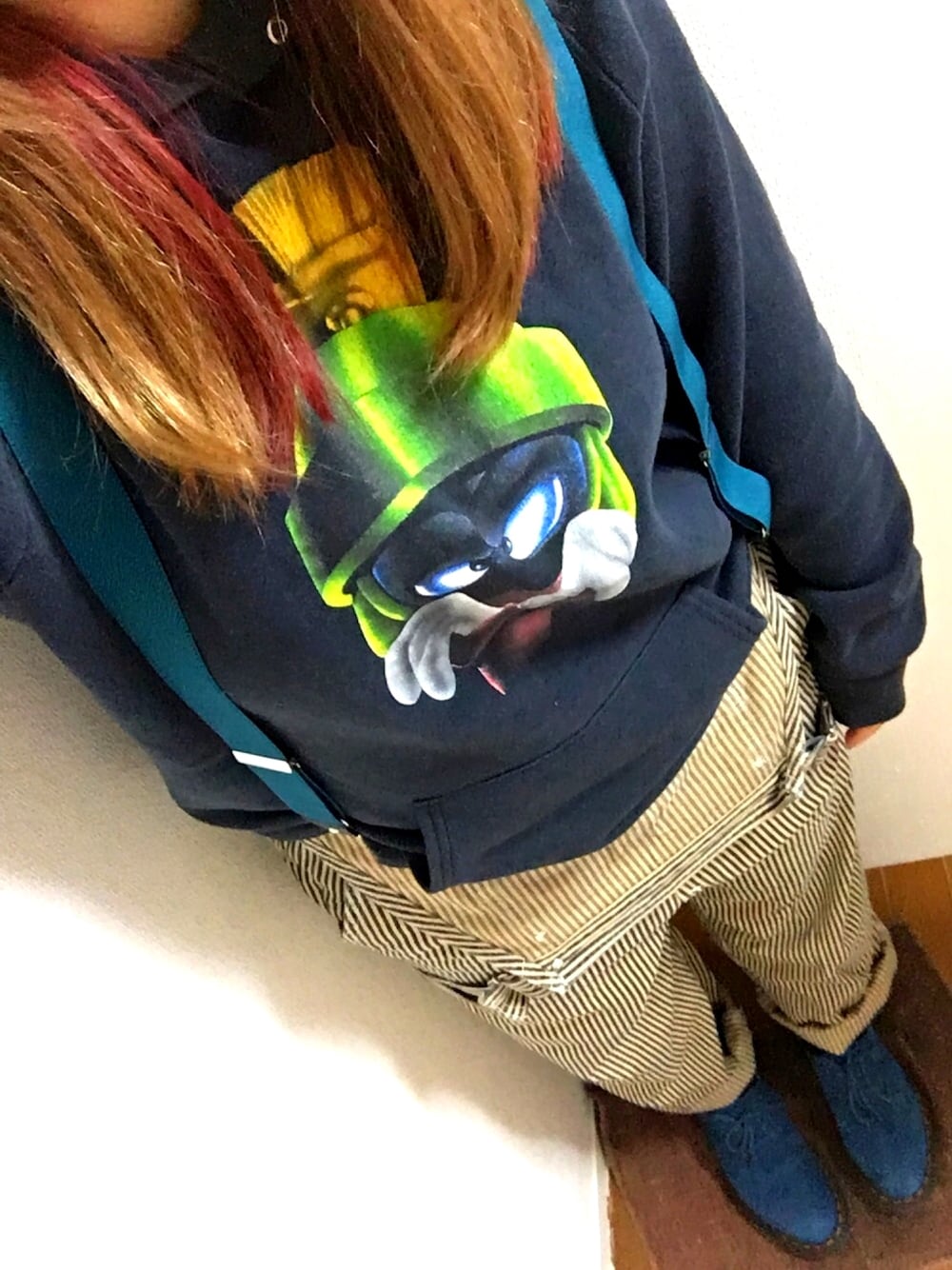 初投稿ーーー!! 新しいマーチンをおろした記念◎ マーチンとサスペンダーの色合わせと 大好きなルーニー・テューンズ。 パーカーの剥げ具合が堪らん(^ω^)