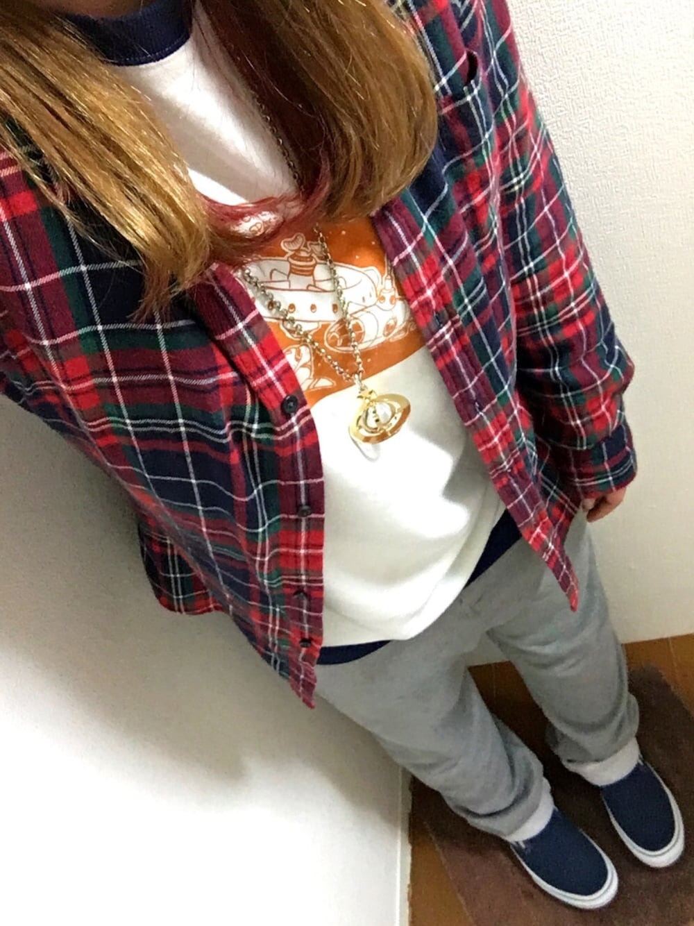 こんばんわーーーん🐶 今日寒すぎました、、、🍃 そんな今日はネイビーコーデ!! 帽子ネイビー!(写ってないけど…) スニーカーネイビー!! スウェットが白とネイビーの物! チェックシャツ少ーしネイビー笑 ちなみにスウェットは、 ミッキーのプリントの物で 昔母上殿が着ていたらしい。 いただきました(^ω^)💫 VANSのネイビースリッポンを GETしてからというもの、 わたしにネイビーブーム来てます🤘