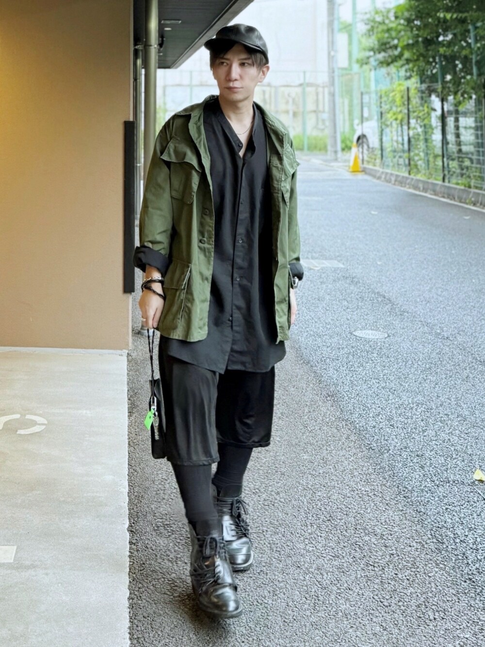 いつもご覧頂き、ありがとうございます😊 US軍60年代オリジナルの3rdモデルのファティーグジャケットでミリタリー色全開。 それ以外を全て黒で構成して、Yラインを意識して組んでみました! カーキー色と同類の色をキーチェーンのグリーンで拾いました🟢