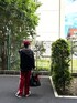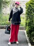 いつもご覧頂き、ありがとうございます😊 服は全てキレイめアイテムで、合わせましたが、全て崩してハズしてみました! シャツ→シアー素材 ベスト→柄、オーバーサイズ スラックス→真っ赤 さらに、パンツの赤を、バッグの中をチラ見させて赤の統一感を強調。 革靴を合わせても良かったんですが、モードではなく、カジュアルにしたい気分だったので、キャンバススニーカーにしました👟 これから脱毛に行くのですが、もう鬱でしがないです😰
