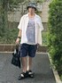 いつもご覧頂き、ありがとうございます😊 涼しげな雰囲気のある、半袖短パンサンダルで組み合わせました! 子供っぽくならないよう、随所に引き締めを施しました。