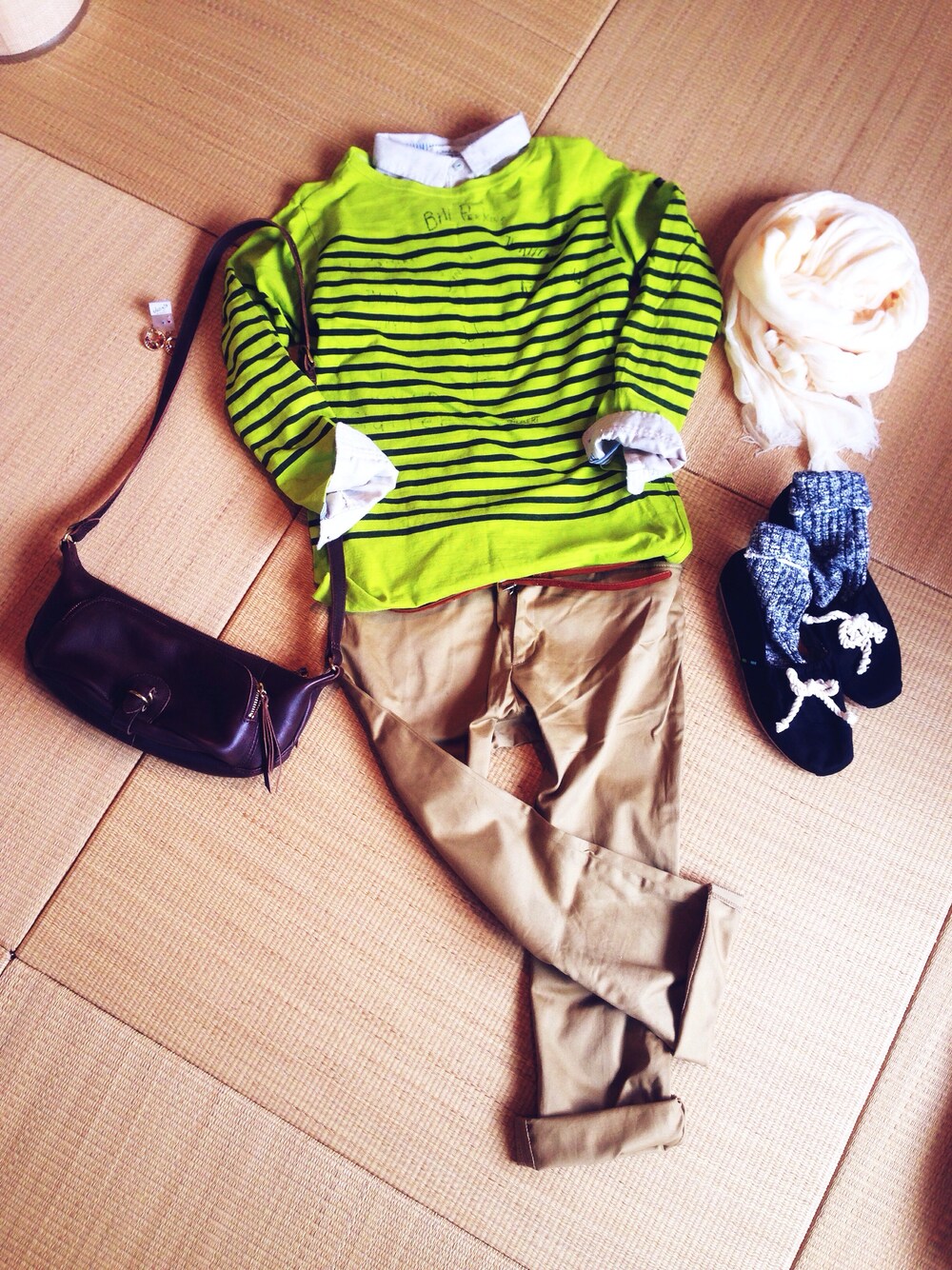 Tシャツには小さな英字がたくさん散りばめて書いてあって、とても可愛いのでお気に入りです(*☻-☻*) Tシャツがネオンカラーなので、その他は控えめにしました。ストールはフワフワしてとっても気持ち良いです。