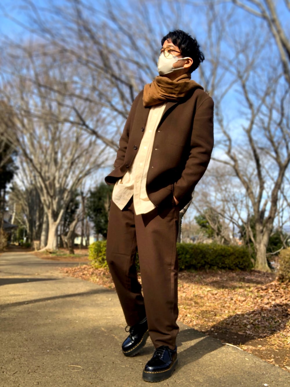 いつもご覧頂きありがとうございます‼️更にはいいね、お気に入り登録もして頂けてとても嬉しいです‼️ 今日は21AWで購入したUNIQLO Uのセットアップで、キレイめコーデを組んでみました。 テーラードのセットアップというかなりキレイめなアイテムを使用しているので、色味をブラウン系で統一、インナーのシャツを少しシワ感のあるバンドカラーシャツを着用。それにより、キメ過ぎな印象から暖かみのある、柔らかな雰囲気になるように意識してみました。 また、全体的にのっぺりとした印象になってしまったので、アクセントとして同系色のマフラーを着用しました。 昨日の夜から本日の朝にかけて雪の予報でしたが、皆さんのお住まい地域は大丈夫でしたか⁉️自分の地域はそんなに降らなかったので一安心です。でも、また今週末に雪の予報が…💦