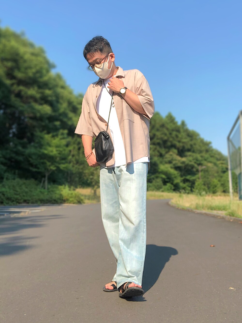 いつもご覧頂きありがとうございます‼️また、いいね、お気に入り登録、更には皆さまの素敵なフォルダに入れて頂けてとても嬉しいです‼️本当にありがとうございます‼️ 今日はベージュ×ブルーの淡色系アースカラー同士を組み合わせて、カジュアル寄りな夏コーデを組んでみました。 コーデのポイントは ・色合いやアイテムがカジュアル寄りな為、メインとなるシャツ、デニム以外はモノトーンでまとめる ・レギュラーカラーシャツを使う事で、中和を図る ・全体的に程良いオーバーサイズでリラックス感を ・レザーアイテムで引き締める 以上の点を意識しました。 シャツにも色々な素材感の物があり、今年は特にシワ感のあるコットン素材がトレンドと言われおりますが、やっぱり、ウール素材のシャツもたまには着たくなりますよね。 以前、このシャツについては紹介しているので、詳しい事は割愛しますが、サマーウール独特の肌触り、ややストレッチ性もあり、かなり着心地がいいです。また、絶妙なメランジ感がいい感じです。 まだまだこれからが夏本番、色んなシャツ、Tシャツを楽しんで行きたいです‼️ 稚拙な文章ながら、最後まで読んで頂きありがとうございました‼️