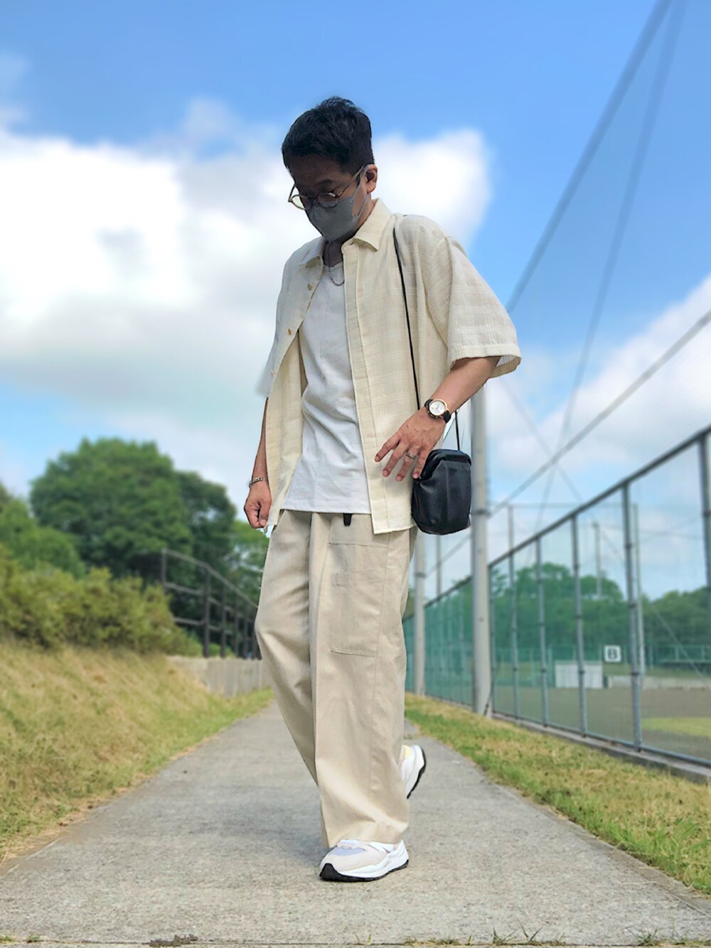 いつもご覧頂きありがとうございます‼️また、いいね、お気に入り登録、更には皆さまの素敵なフォルダにも入れて頂けて、とても嬉しいです‼️本当にありがとうございます‼️ 今日は暑い夏だからこそ組みたくなる、オールホワイトの爽やかなワントーンコーデを組んでみました。 コーデのポイントは ・少し色味をズラしながらのワントーンにする事で、のっぺりとした印象にならない様に ・シアー系のチェックシャツで、ちょっとした個性、トレンドを取り入れる ・リネン、ウール素材の他にはあまり見ないスラックスで、差別化を図る ・バッグ、ベルトには黒のレザーアイテムを取り入れて、引き締めポイントを ・足元は同系色のスニーカーでカジュアルめに 以上の点を意識しながらコーデを組みました。 今回のパンツについて、5月の半ばに予約購入した物が少し前にようやく届きました。長かった…でも、待った甲斐があったと思う位に満足度の高いアイテムでした。 素材感もリネンの軽さや清涼感もありながら、ウールの肌触りや艶感もあり、かなり高級感の感じられるアイテムです。 また、ユーティリティスラックスという事で、ディテールはカジュアルめな作りにはなっていますが、素材、カラーも相まって、パンツ単体としてバランスの取れたアイテムになっています。 本当に購入当初の期待感を見事に超えて来てくれたパンツでした。これからも、色んなコーデに取り入れて行きたいと思います。 稚拙な文章ながら、最後まで読んで頂きありがとうございました‼️