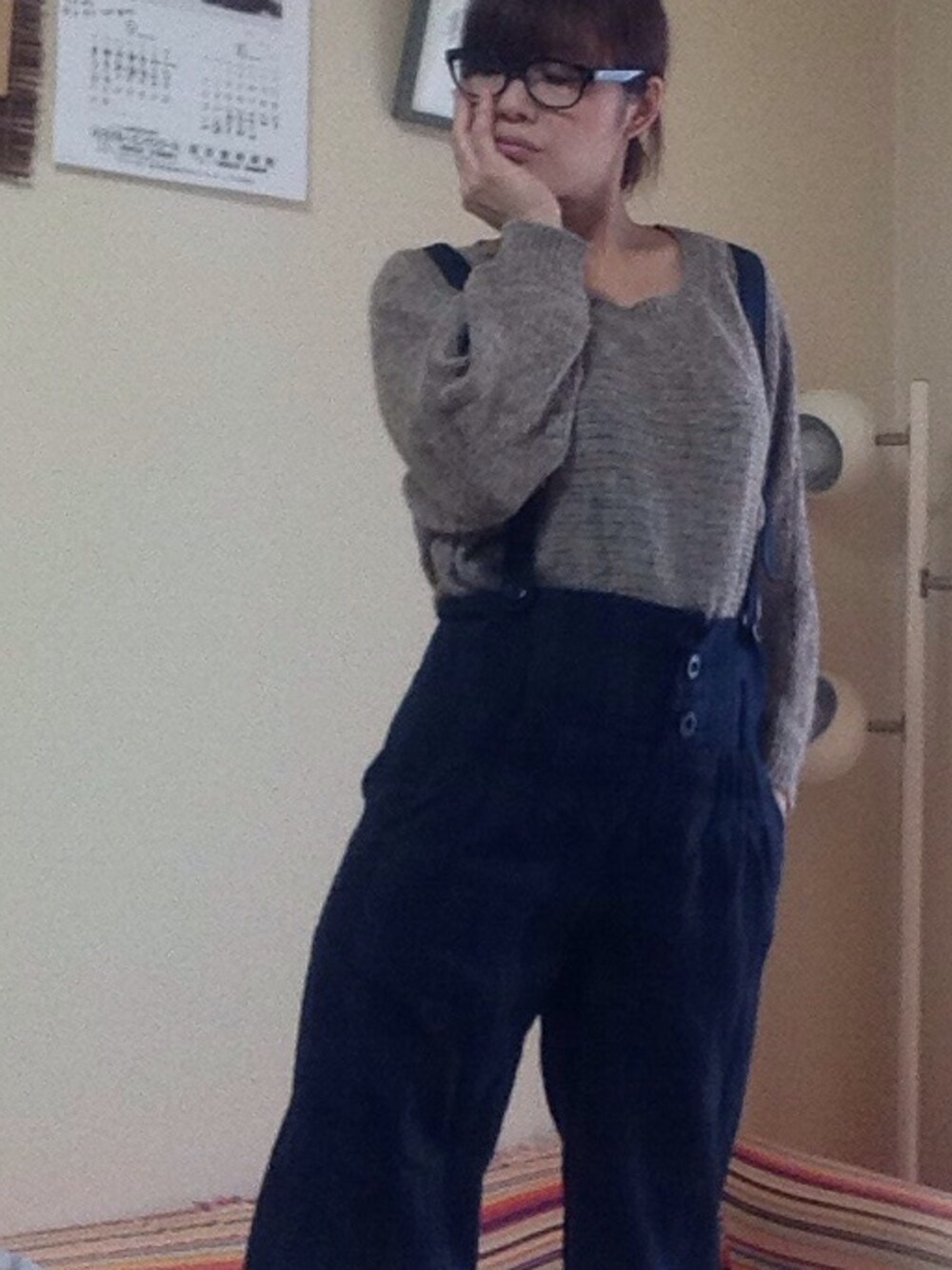 ジャーナルスタンダードのドルマンニットが大人っぽいので あえて外しのゆったりパンツのサスペンダーつき!