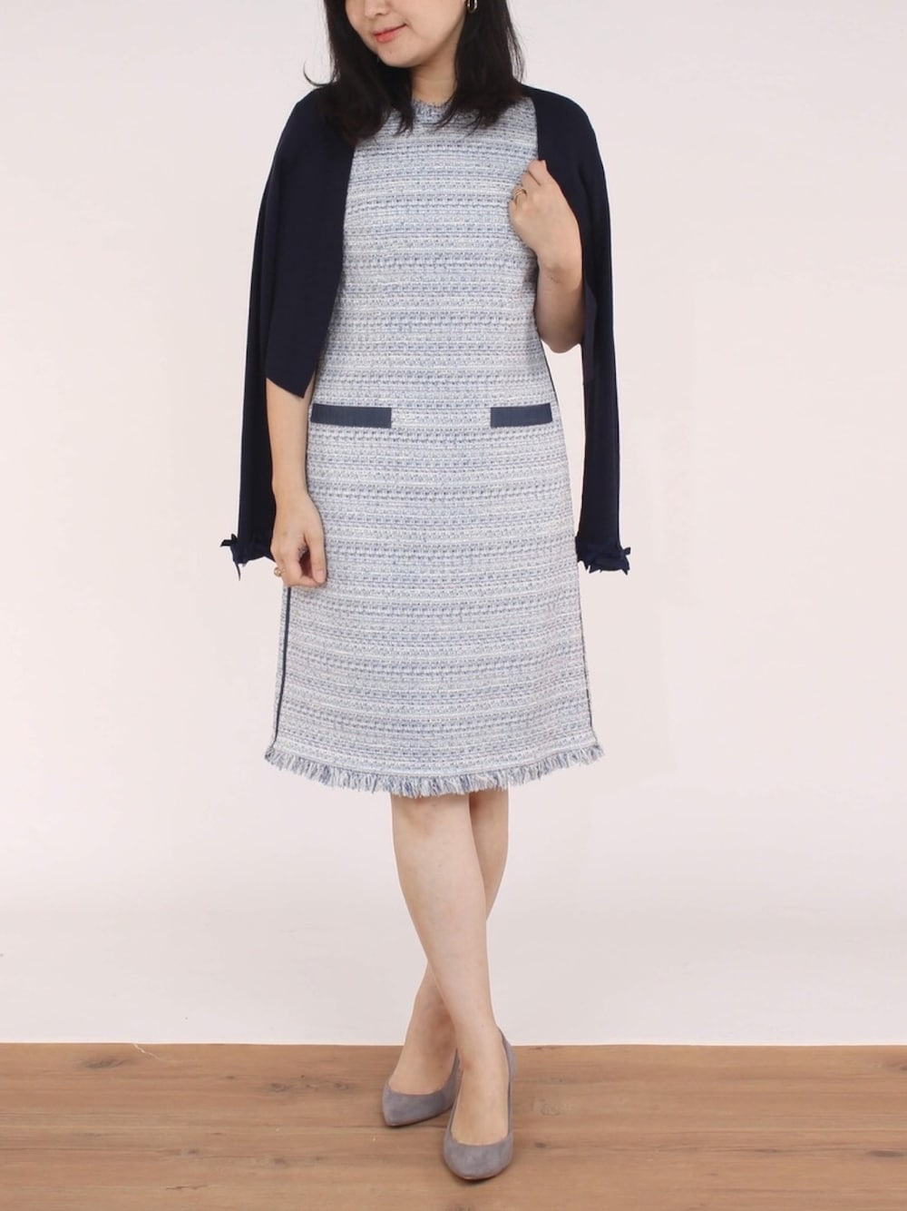 AIのワンピース「パピヨンブルーファンシーツイード」を使ったコーディネート